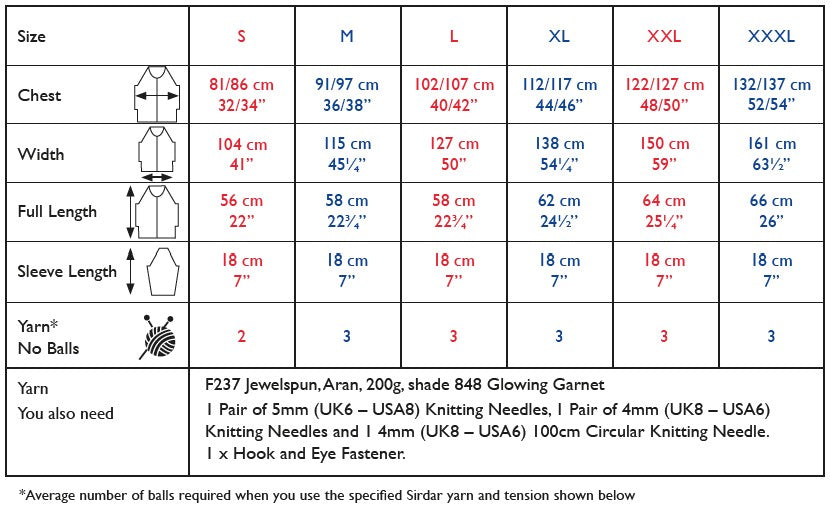 Sirdar Jewelspun Aran Lace Stitch Cardigan Pattern Measurements