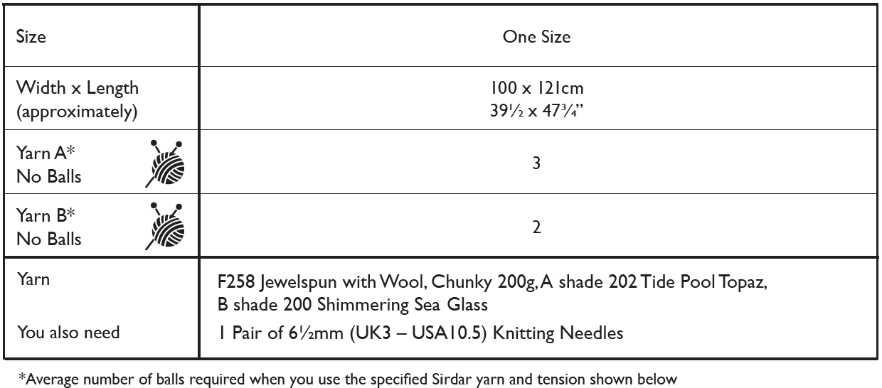 This stunning blanket is worked as one piece in garter stitch. By picking up a stitch from the previous panel you work up and down the blanket working nine panels together to form your blanket. So there is no sewing up required! You use two shades of Jewelspun Chunky.