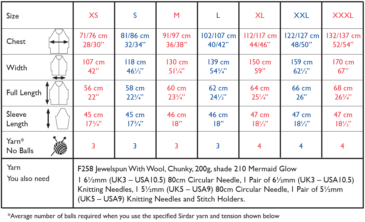 Sirdar Jewelspun Chunky Cardigan Pattern Measurements