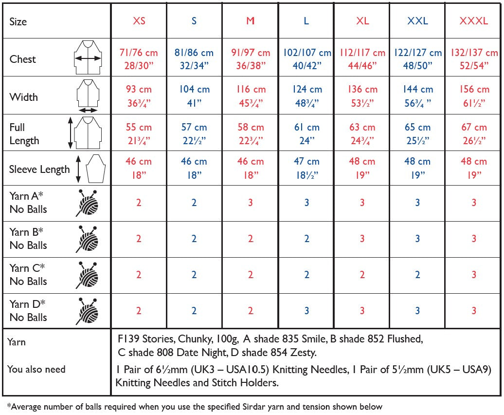 Sirdar Stories Chunky Striped Cardigan Pattern Measurements