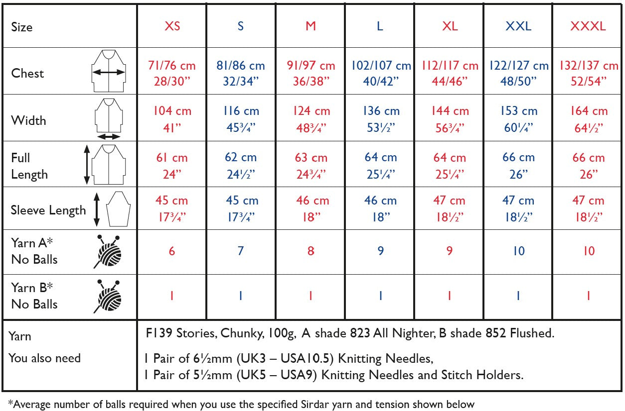 Sirdar Stories Chunky Slouchy Cardigan Pattern Measurements